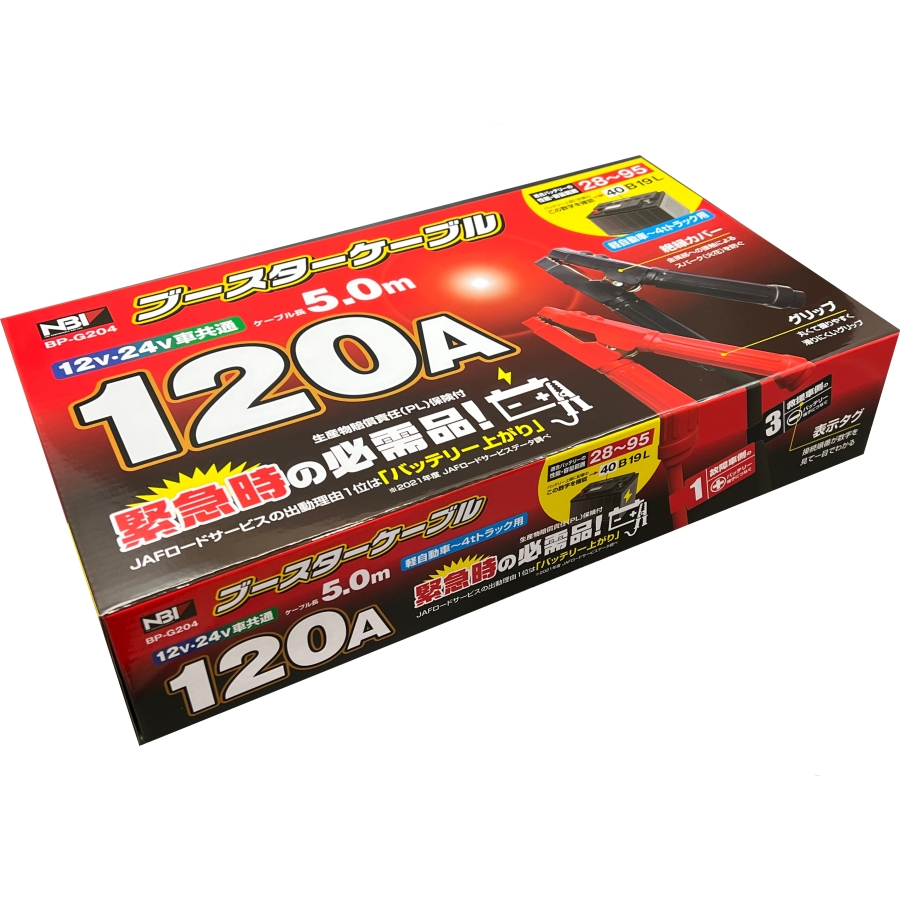 BP-G204 ブースターケーブル 12V 24V共用 120A 5m 日本ボデーパーツ工業