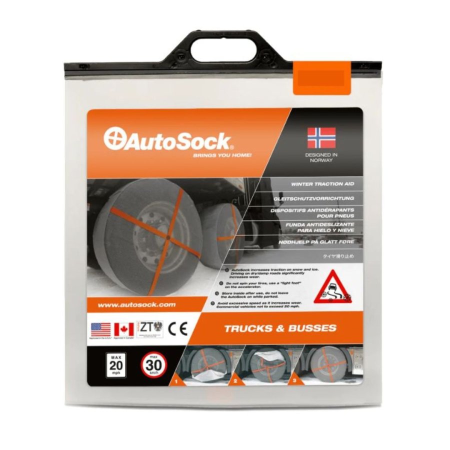 トラック用AutoSockはトラック・バス用の布製タイヤチェーンです。
