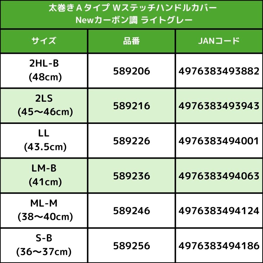 | 2HL-B(48cm) | 589206 | 4976383493882 | 2LS(45〜46cm) | 589216 | 4976383493943 | LL(43.5cm) | 589226 | 4976383494001 | LM-B(41cm) | 589236 | 4976383494063 | ML-M(38〜40cm) | 589246 | 4976383494124 |