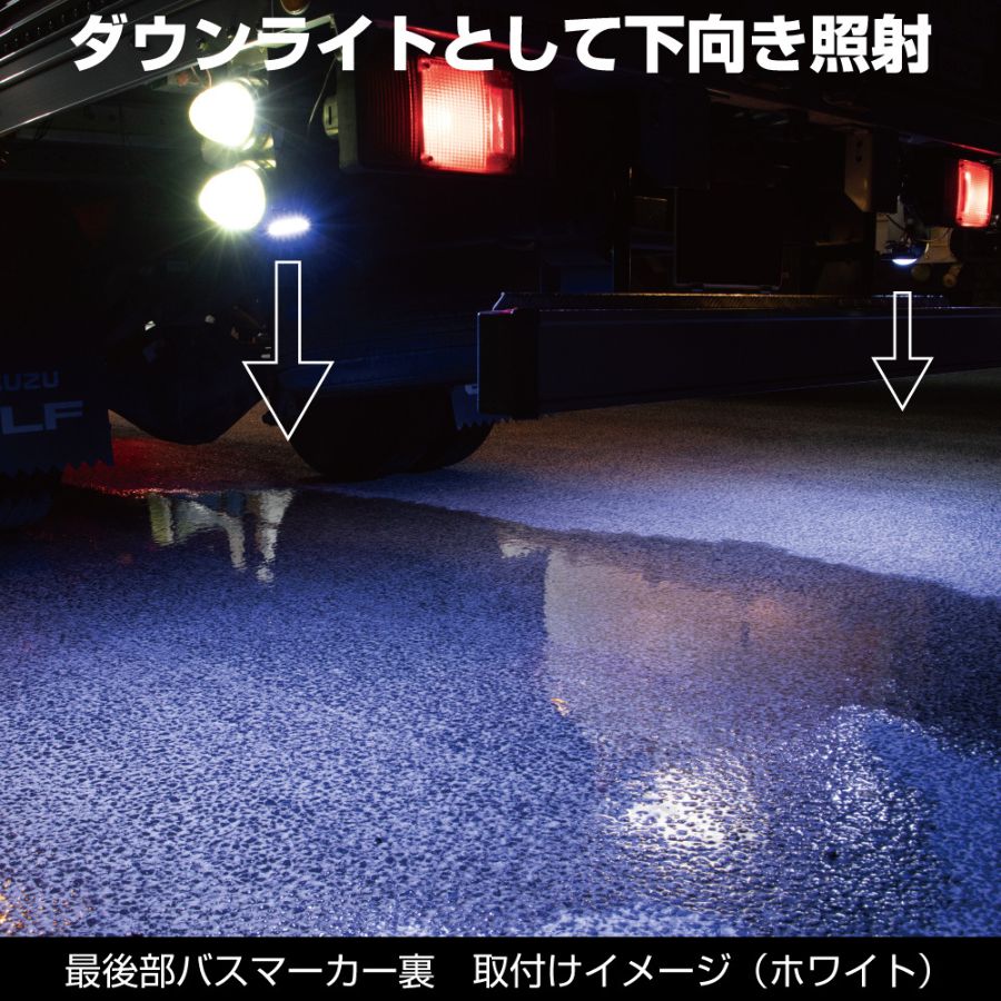 地面に向けて照射すればダウンライト、シャーシに向ければシャーシライトなど様々なシーンで活躍!