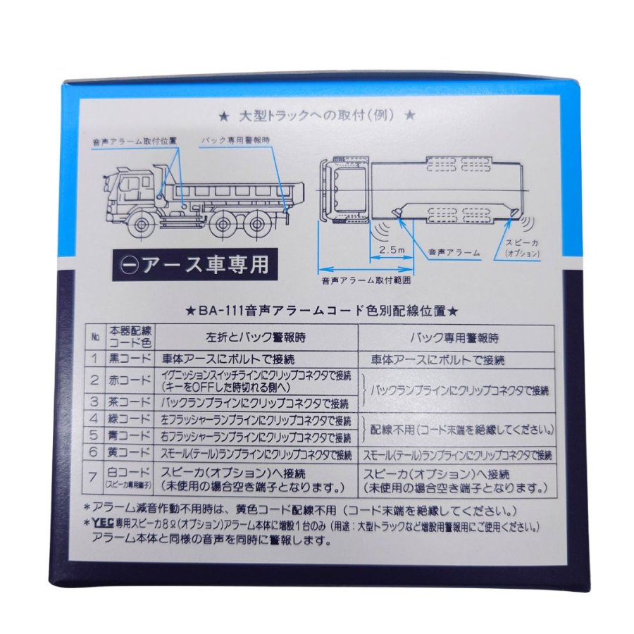 配線コードは7mタイプと20mタイプがありトラックの後方設置にも対応します。