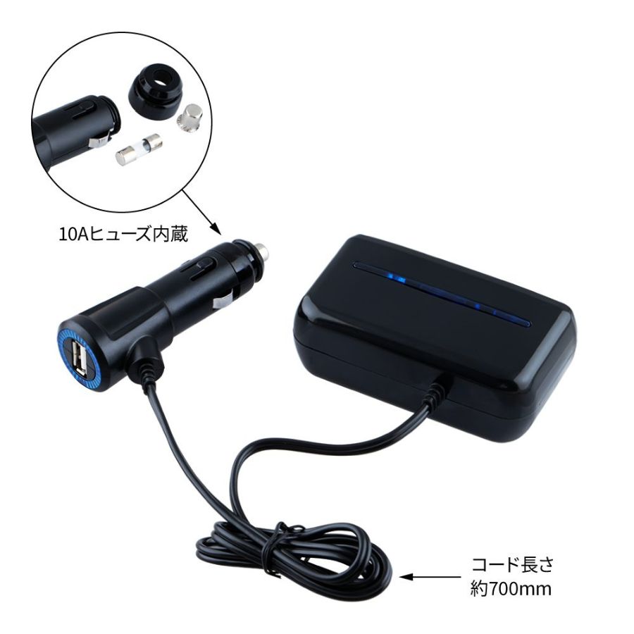 本体にはシガーソケット×2連、USB-A タイプ/C タイプを装備。