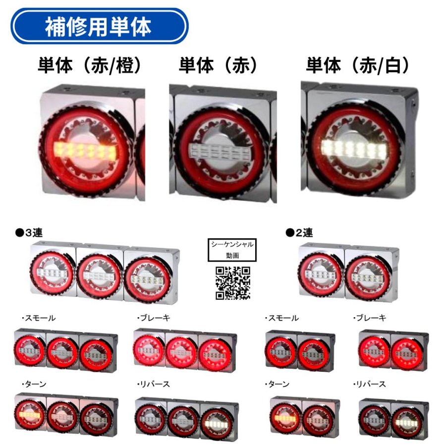 オールLEDタイプの丸型テールランプの補修用単体ランプです。