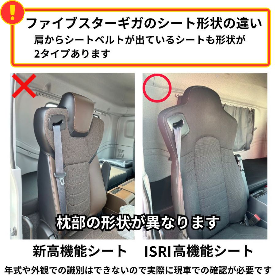 ※ファイブスターギガ(R4.10〜)の 新高機能シート(ヘッドレストが盛り上がっている高機能シート)は取付けできません。