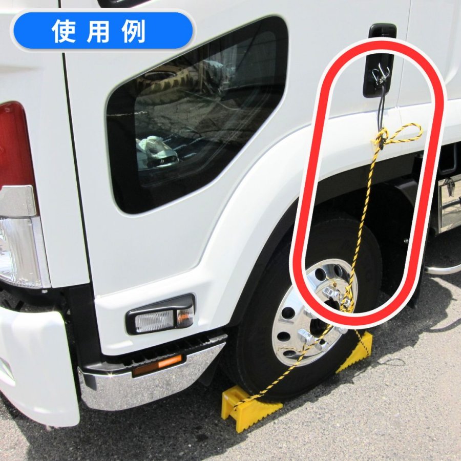 ハイプラ製タイヤストッパーの置き忘れ防止用ロープ(金具付)