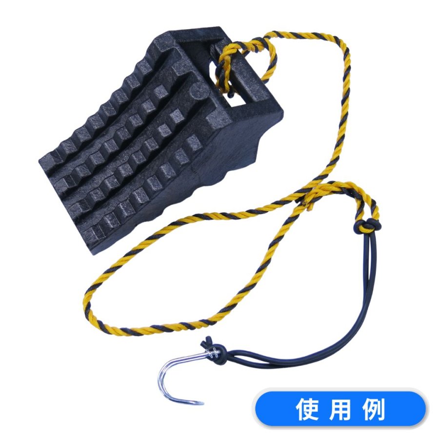 ハイプラ製タイヤストッパーの置き忘れ防止用ロープ(金具付)