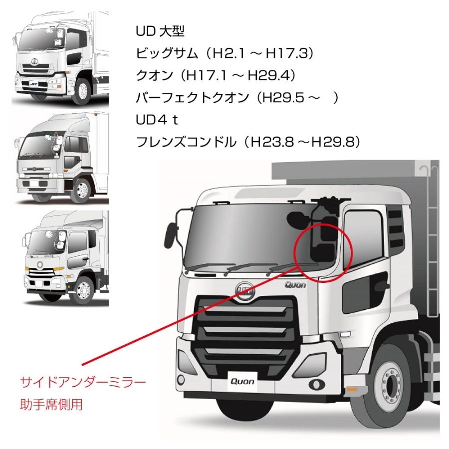 UDトラックス大型・4t用サイドアンダーミラー左下用(助手席側)ヒーター付