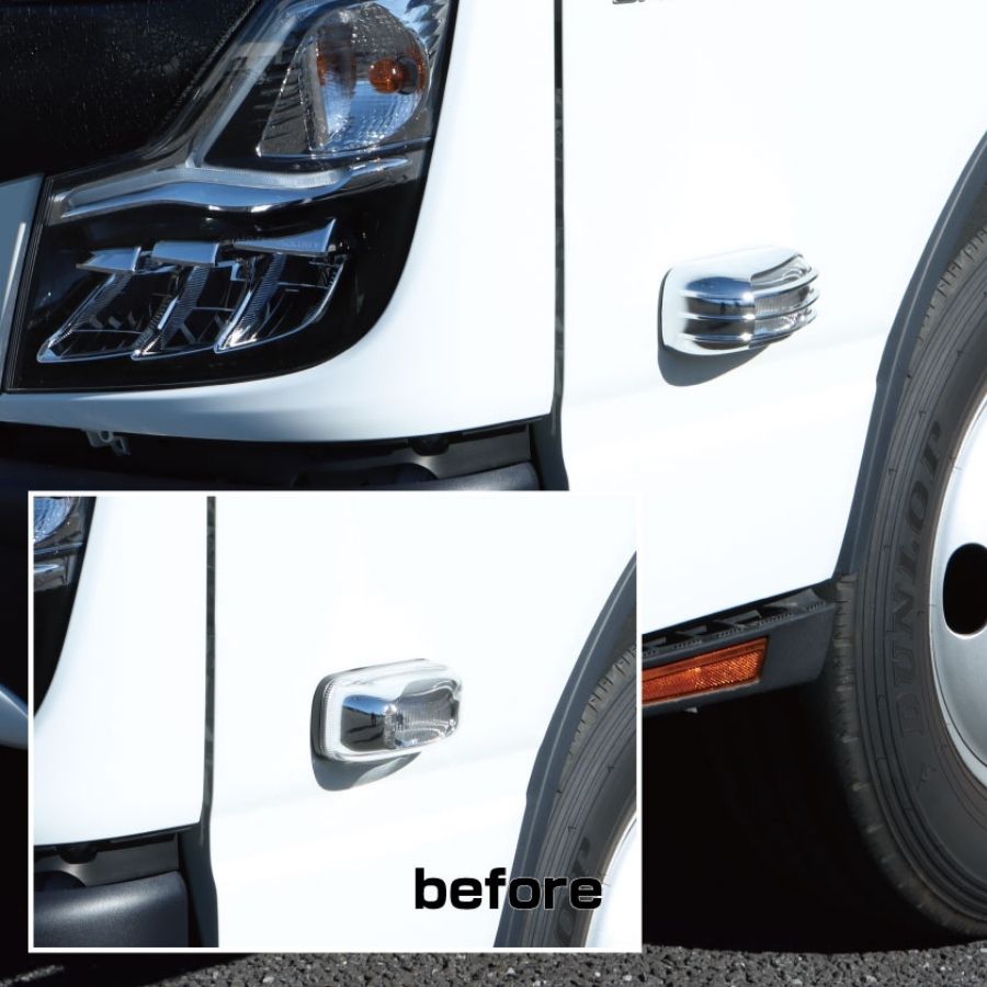 メッキドアサイドマーカーランプカバー 20キャンター 標準/ワイド共用 左右セット ジェットイノウエ 526161
