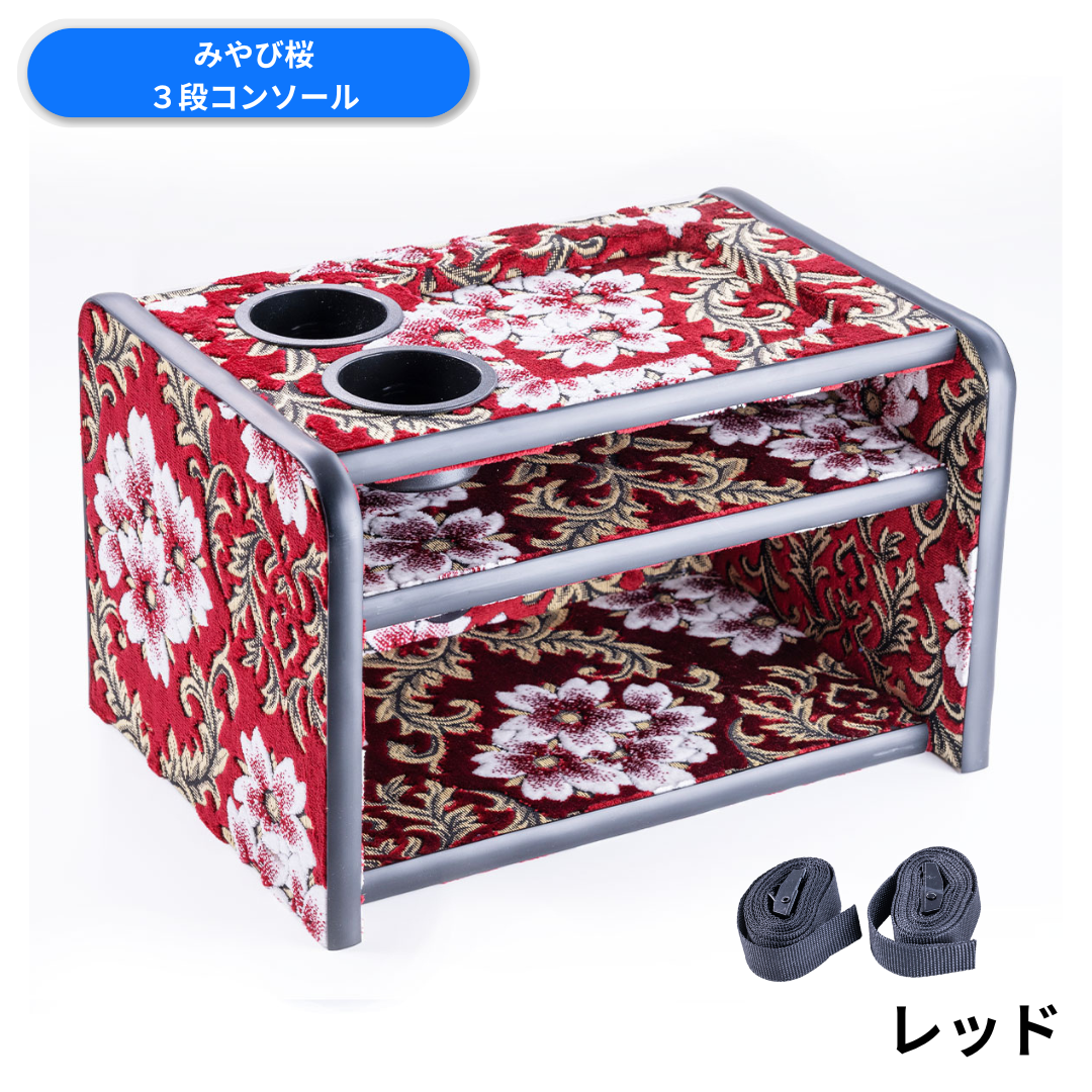 雅 3段コンソールボックス みやび桜 レッド