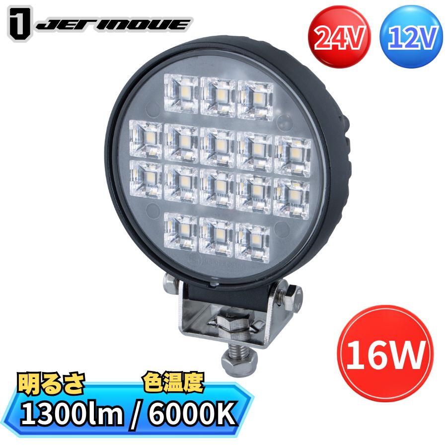 LEDワークランプ 丸型 16W 24V/12V共用 WL-39 ジェットイノウエ 526902