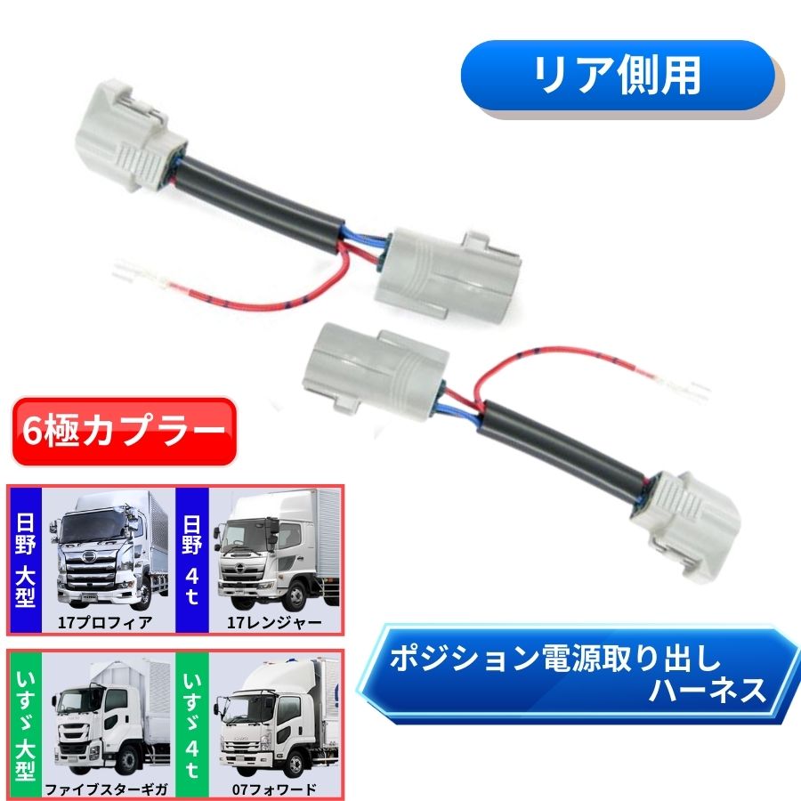 リアポジション電源取り出しハーネス 6極カプラー車用 日野 17プロフィア/17レンジャー いすゞ ファイブスターギガ/07フォワード (2本入) YRK134