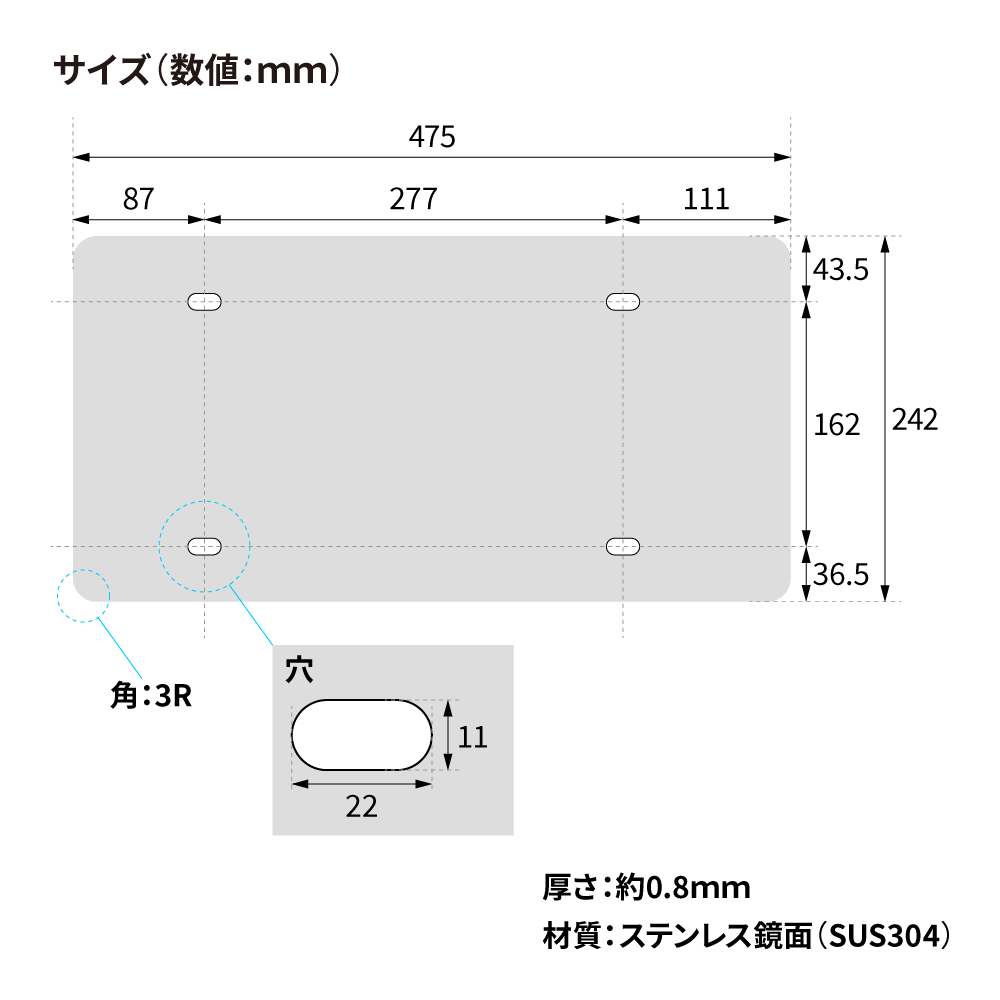 サイズ:W475×H242㎜ 厚さ約0.8mm