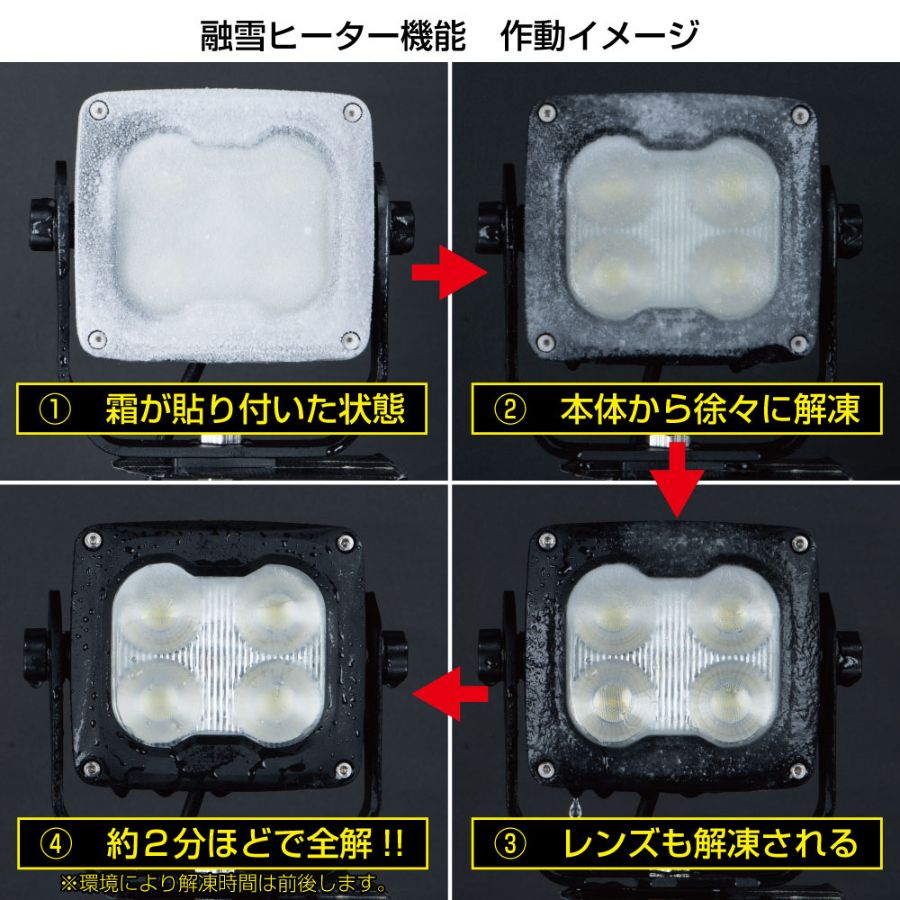 融雪ヒーター付きのハイパワーワークランプ。
