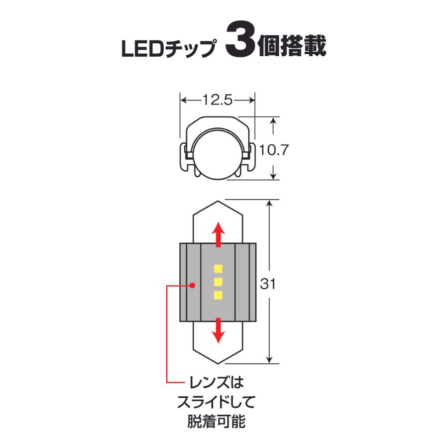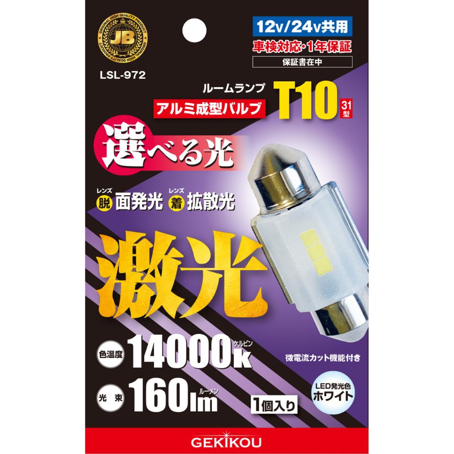 激光アルミ成形LEDバルブ 160lm T10×31mm 12V 24V共用 LSL-972 6141972 日本ボデーパーツ工業