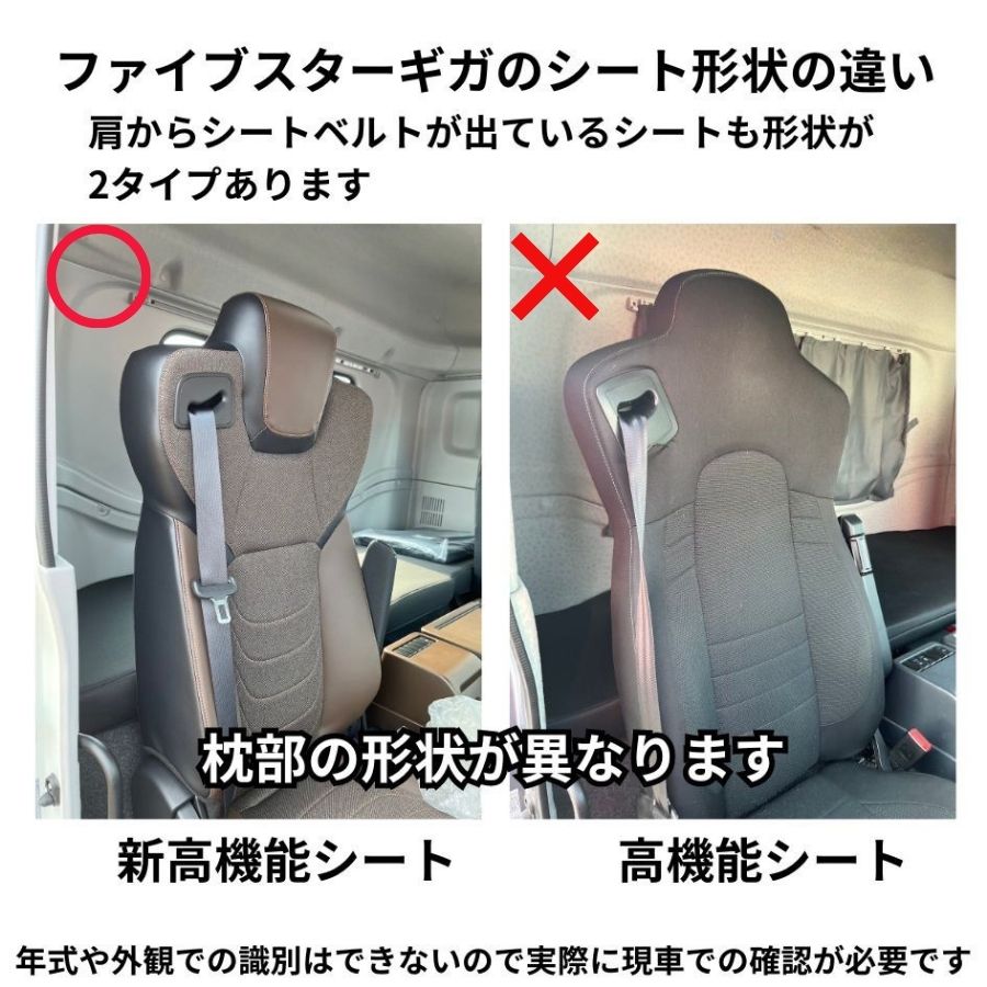 ※ファイブスターギガ(R.2〜 )の ISRI 高機能シート(ヘッドレストが平らな形状の高機能シート)は取付けできません。