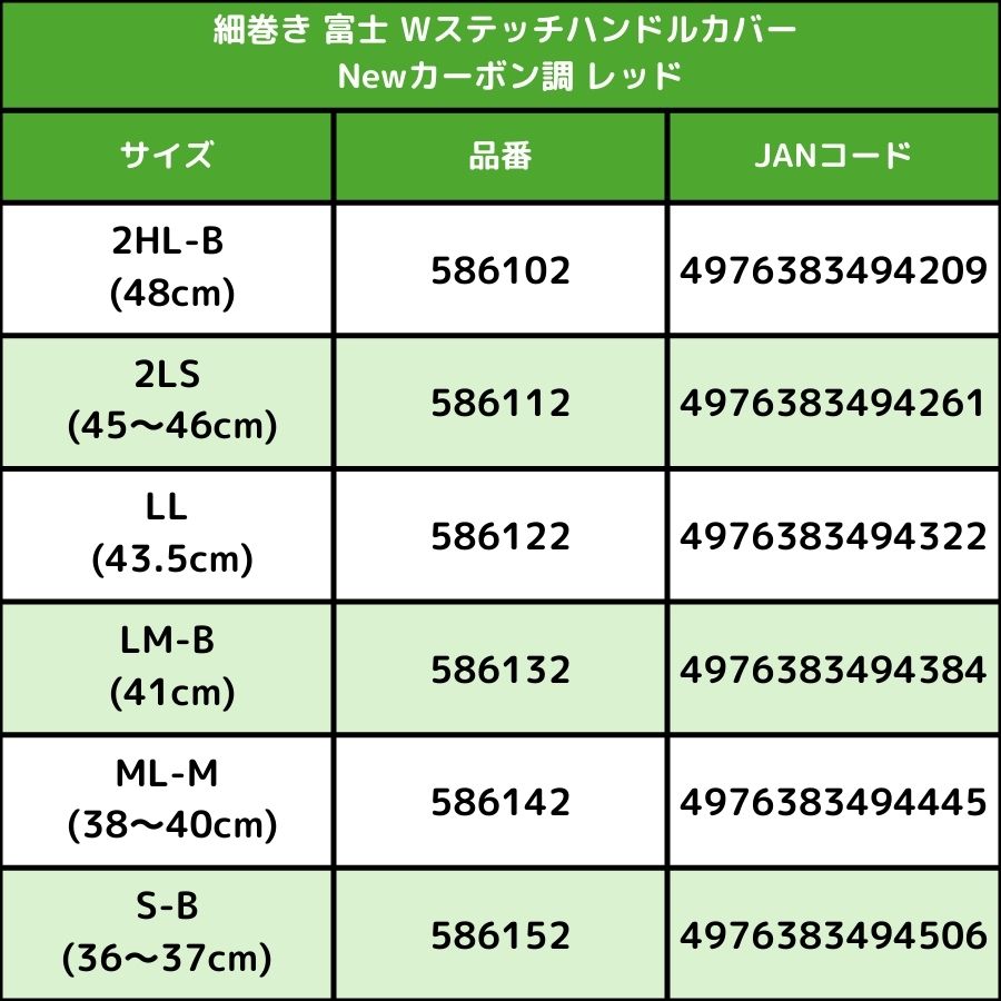| 2HL-B(48cm) | 586102 | 4976383494209 | 2LS(45〜46cm) | 586112 | 4976383494261 | LL(43.5cm) | 586122 | 4976383494322 | LM-B(41cm) | 586132 | 4976383494384 | ML-M(38〜40cm) | 586142 | 4976383494445 |