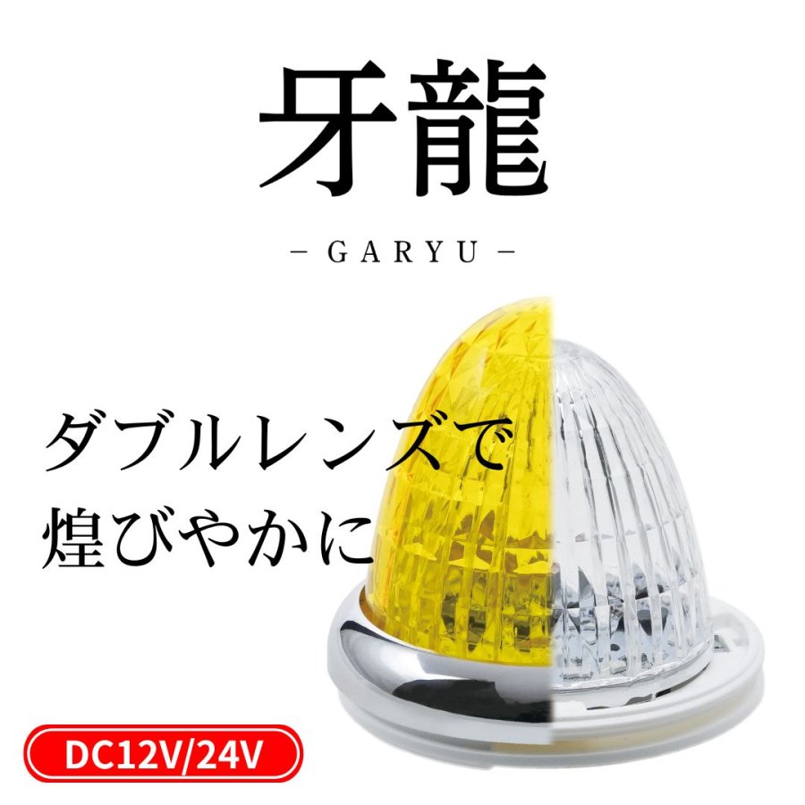 縦のカットが光を流れるように導くインナーレンズと煌びやかな光を拡散するアウターレンズの2重レンズ仕様のマーカーランプです。