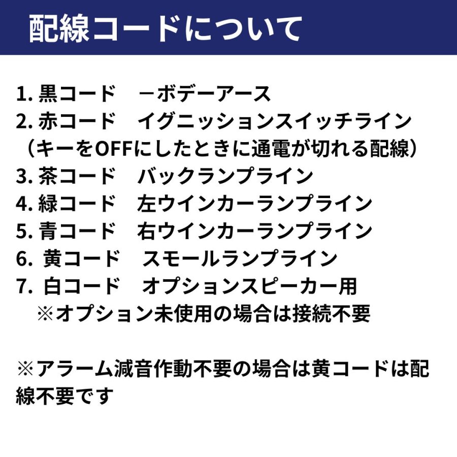 配線コードは7mタイプと20mタイプがありトラックの後方設置にも対応します。