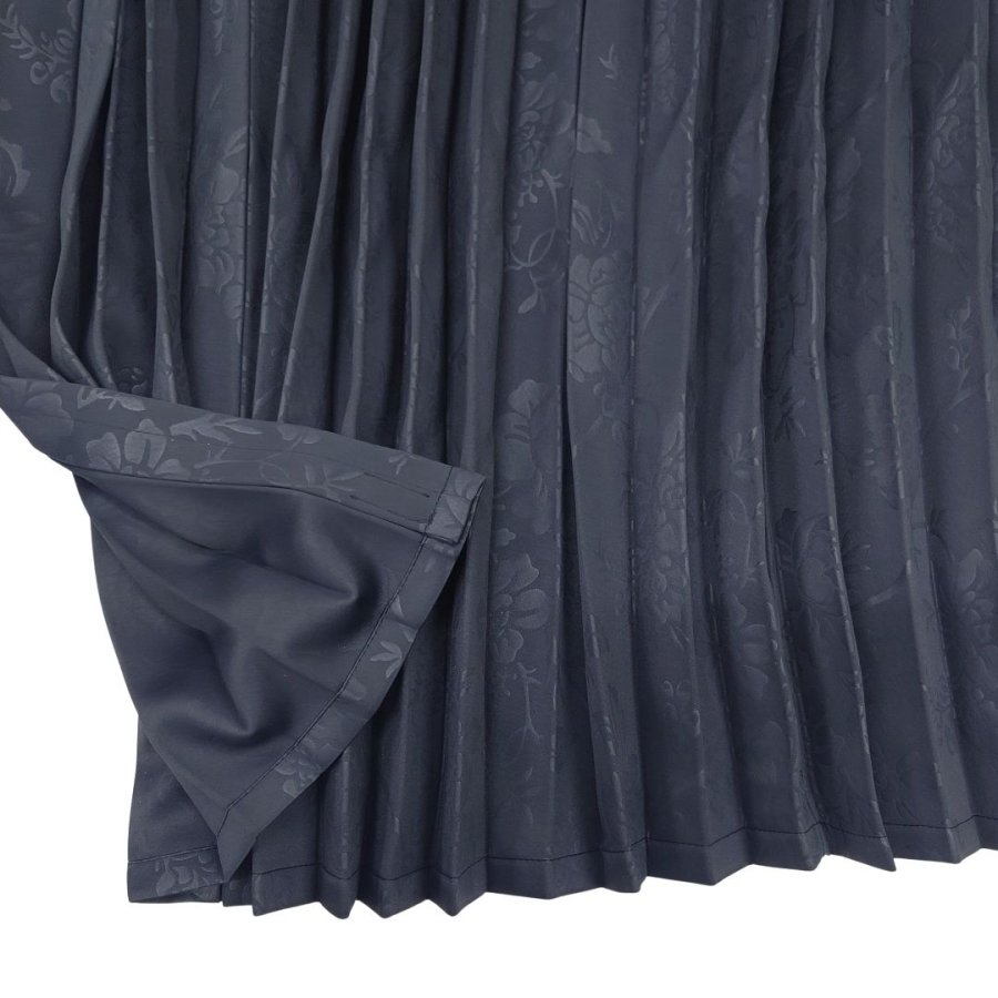 ブラック生地素材に花柄模様が施されたカーテンです。