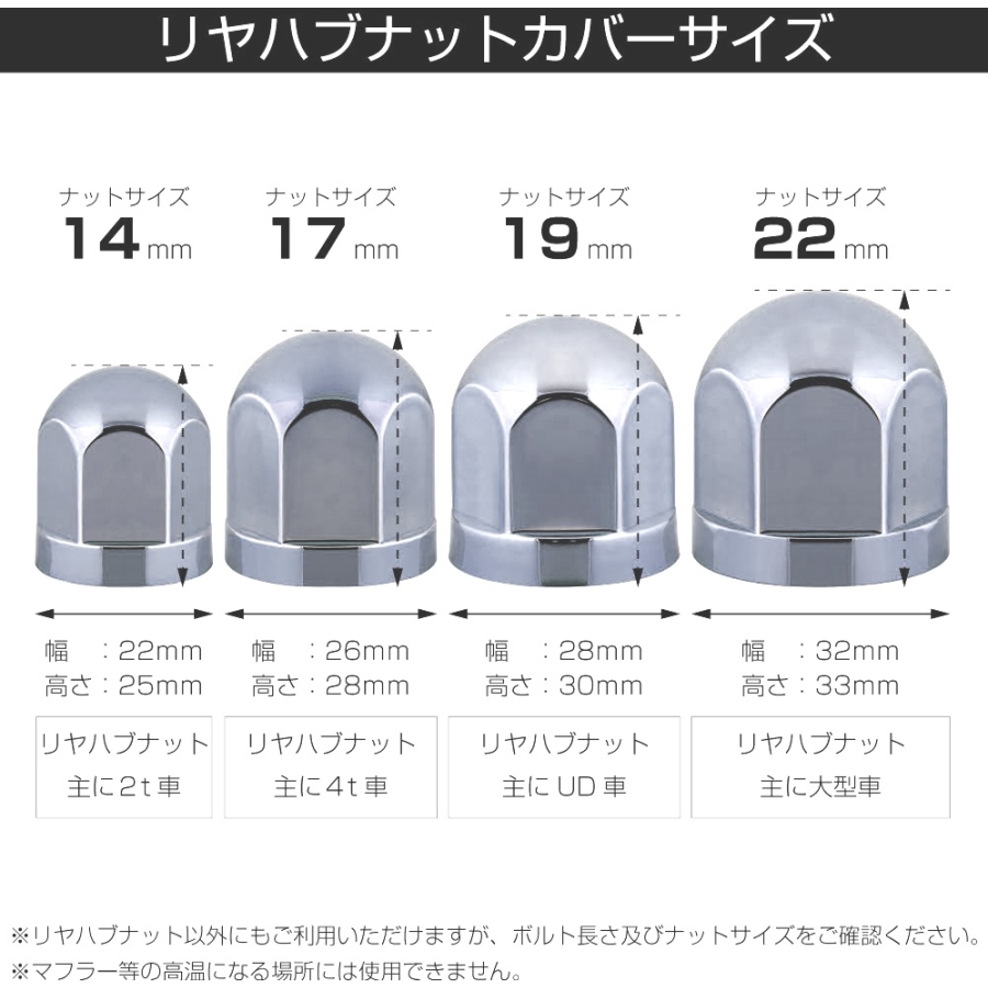 ※車両により取付できない場合があります。実際のハブナットサイズを計測ください。