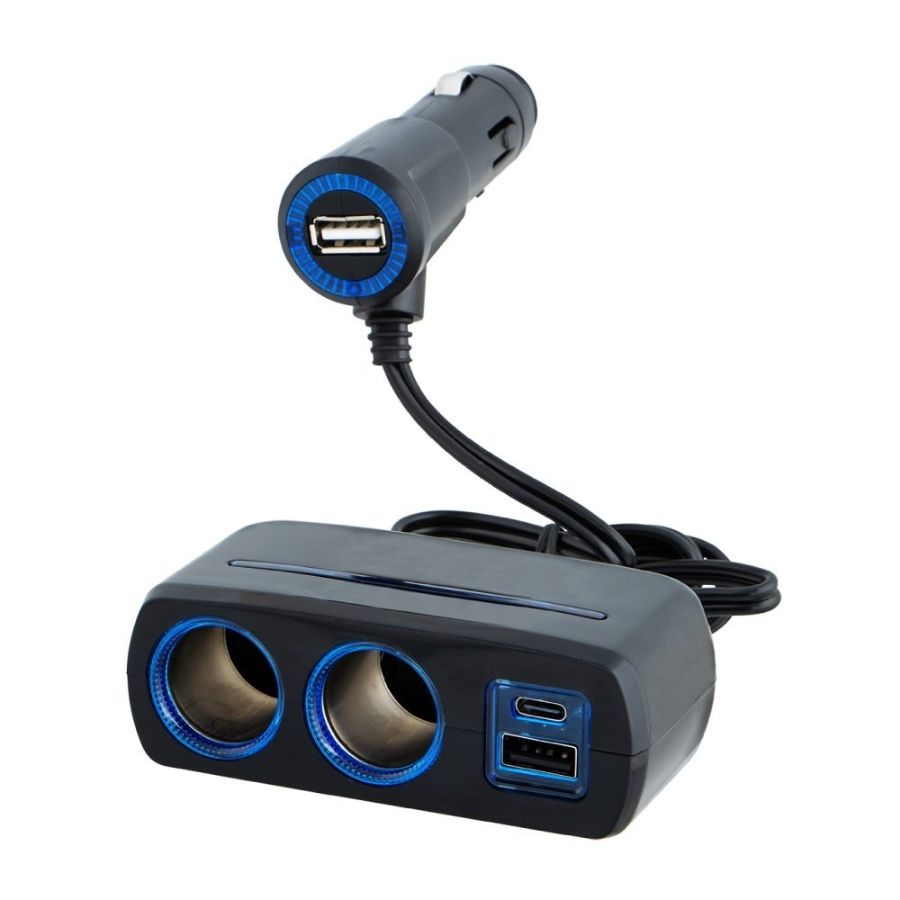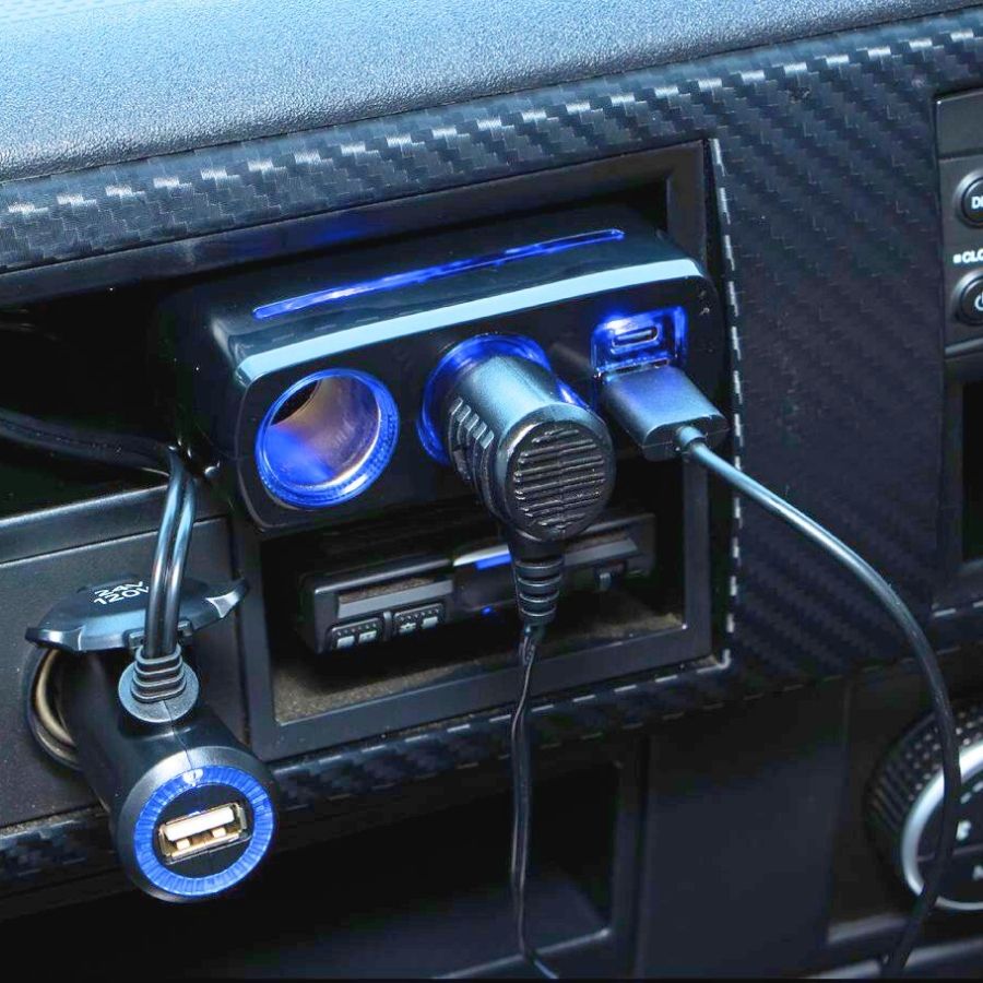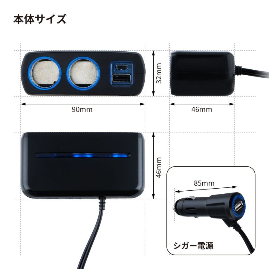 本体にはシガーソケット×2連、USB-A タイプ/C タイプを装備。