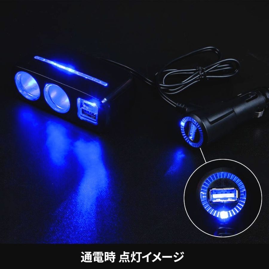 コンパクトソケット 2連シガー電源&USBポート付き セパレートタイプ シガーソケット分岐 ジェットイノウエ 502150