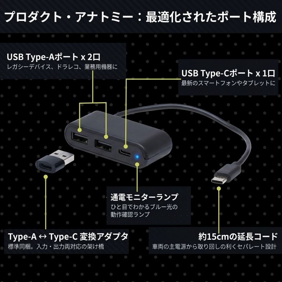 ●USB Type-Aポート2口とUSB Type-Cポート1口を搭載しています。