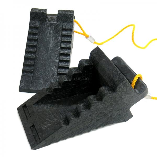 駐車時の車輪止めに2個をロープでつなげていますのでタイヤの前後に置いてご利用ください。