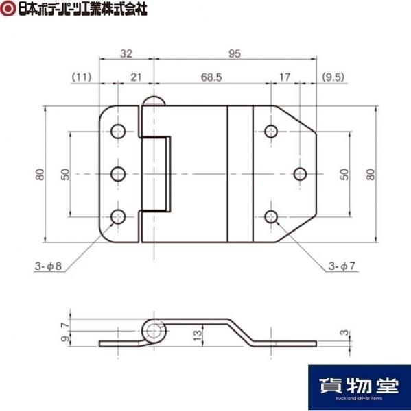 ステンレス製 上開き蝶番 B533 左側 4201333L 日本ボデーパーツ工業
