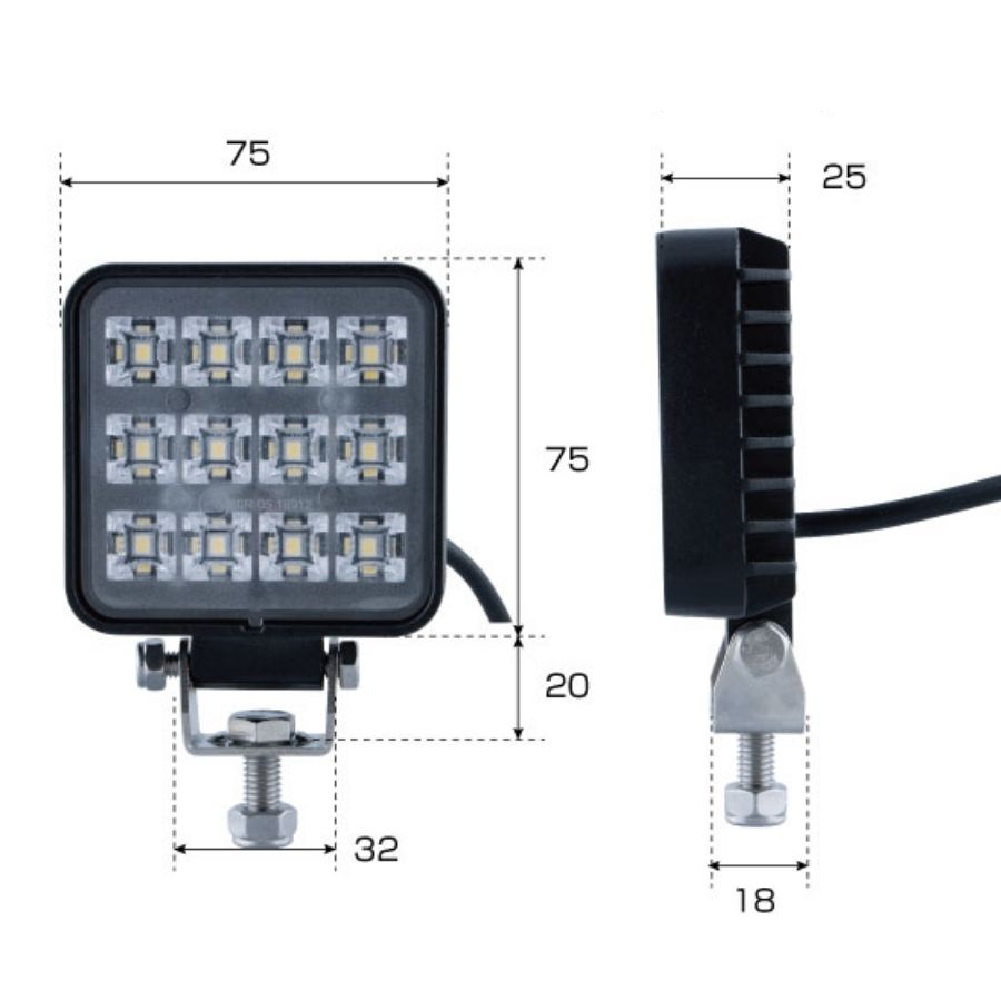 LEDワークランプ 角型 12W 24V/12V共用 WL-34 ジェットイノウエ 526881