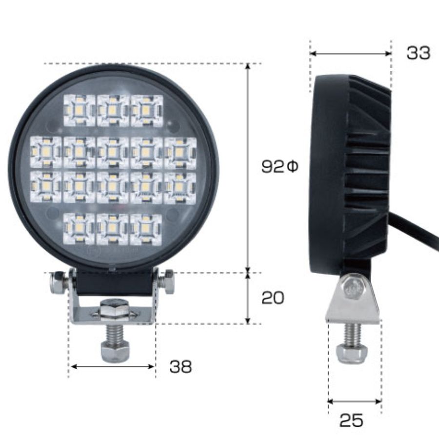 LEDワークランプ 丸型 16W 24V/12V共用 WL-39 ジェットイノウエ 526902