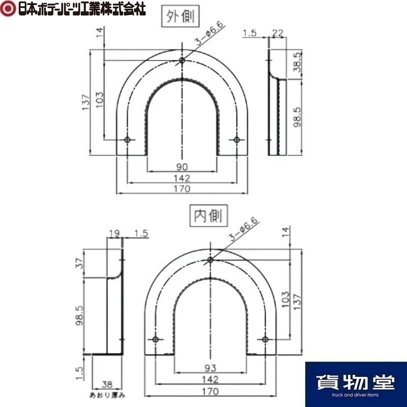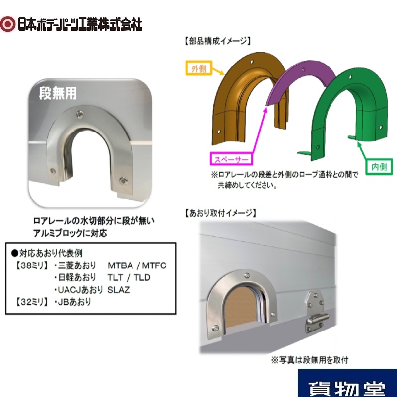 SUS304馬蹄型ロープ通し枠 段無用 あおり厚38mm用 電解研磨 日本ボデーパーツ工業 4200619