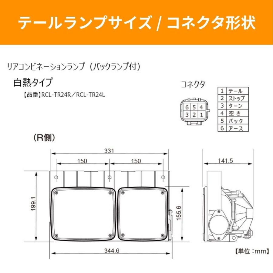 バックランプ一体型のトラック用リアコンビネーションランプです。