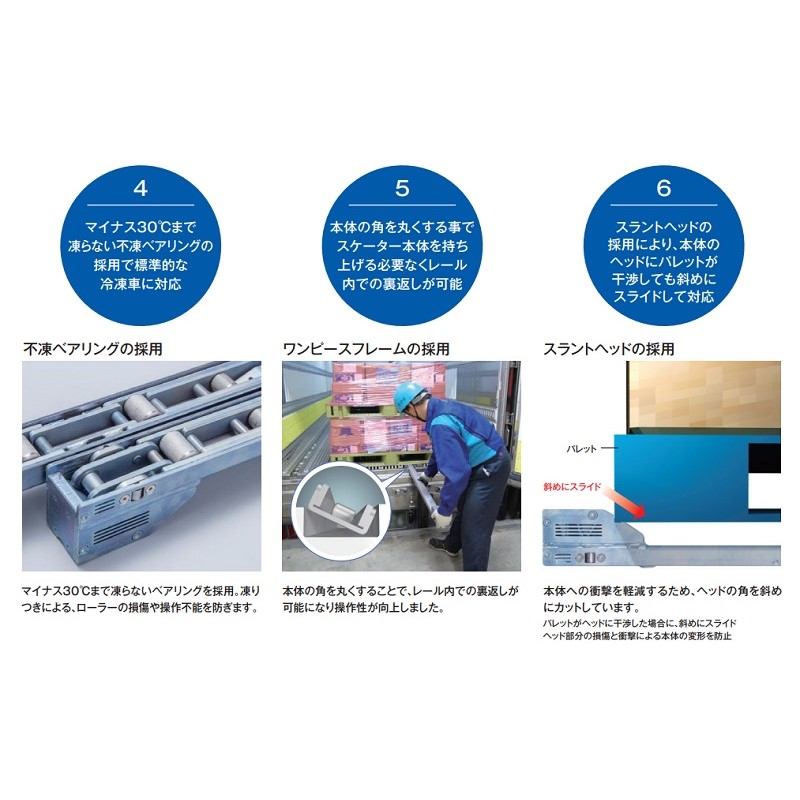 レール壁面とスケーター本体とのコスレを防ぎ快適な操作性を実現