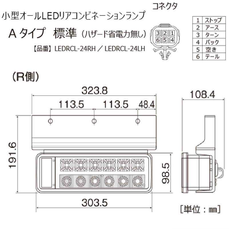 2t用小型オールLEDリアコンビネーションランプAタイプ 右側単品