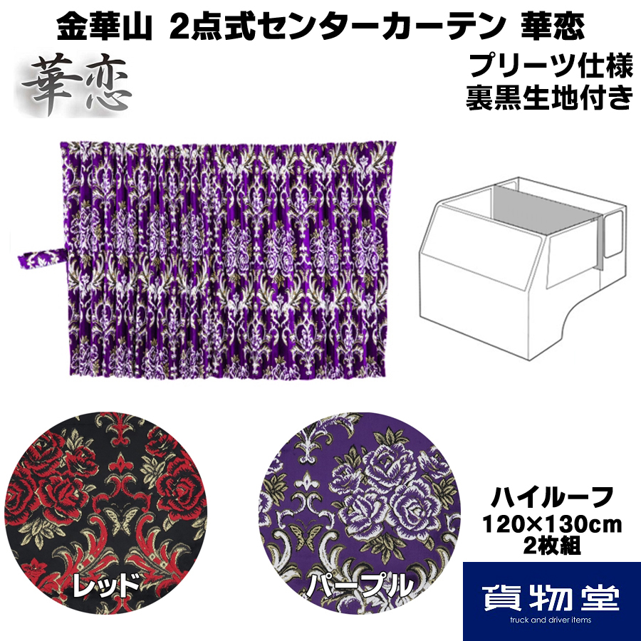 金華山 2点式センターカーテン 華恋 プリーツ仕様 裏黒生地付き ハイルーフH130 フリル無