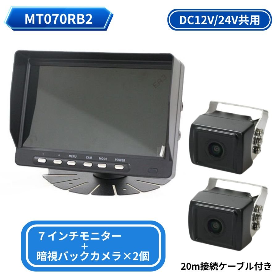 7インチモニター+バックカメラ2個仕様 DC12V24V共用 ドリームメーカー MT070RB2【取り寄せ対応品】