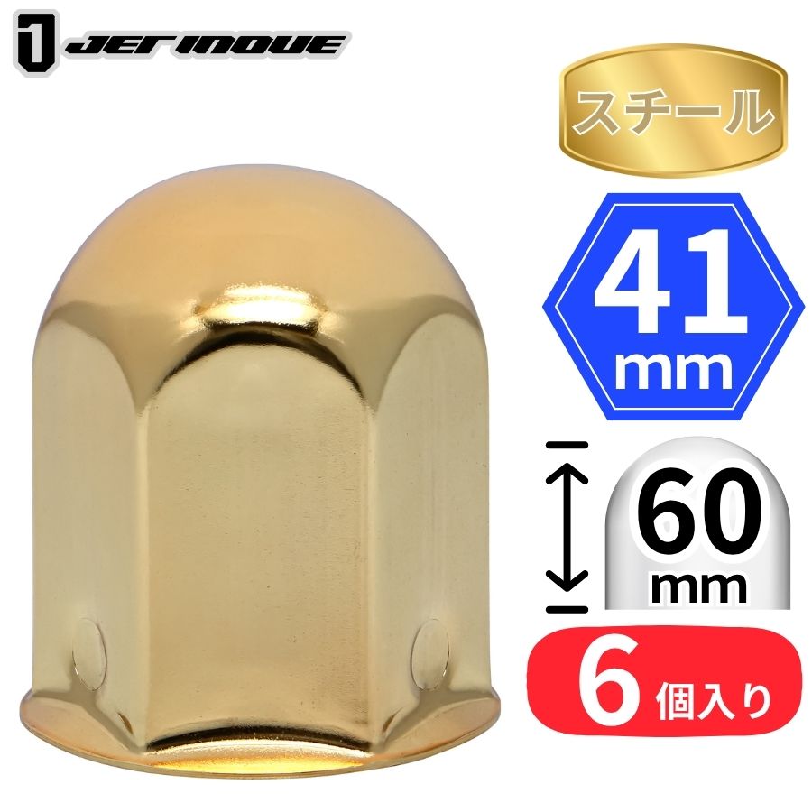 丸型ゴールドナットキャップ 41mm 高さ60mm 6個入 スチール ジェットイノウエ 500344